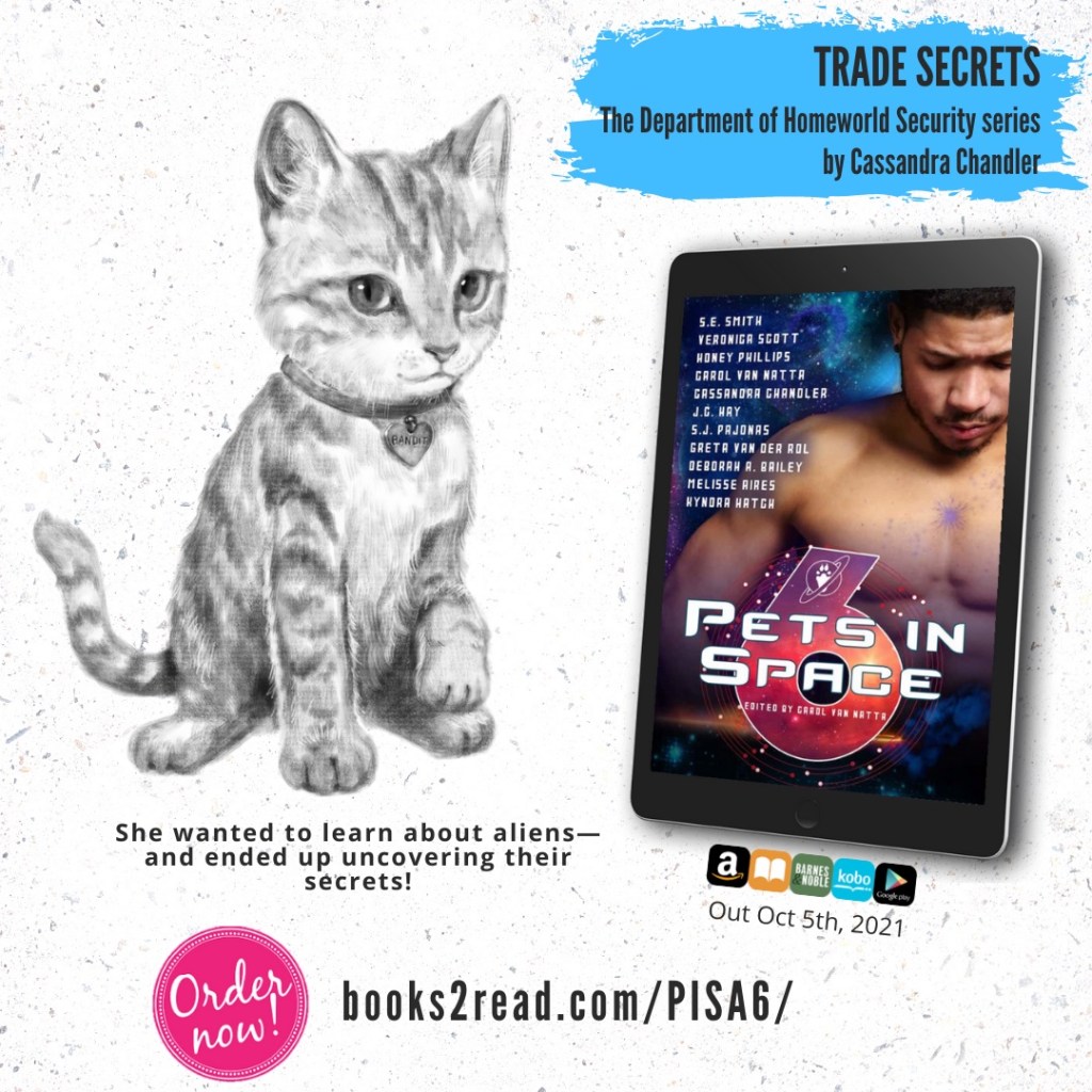 I’ve been wanting to share the secret behind the adorable “space cats” that I introduced in Import Quarantine for a long time now. In Trade Secrets, you finally find out how they became so special! It only makes sense that I share this information in my story for Pets in Space 6 since the kittens were introduced in my first story with the Pets in Space® anthology! 💖
